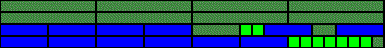 The display is always a nice way of viewing the relatively new feature of “dynamic slot” in Condor. A large multi-core machine is now represented as a single slot with multiple resources. For example, this bit of the display shows a cluster of 8-core machines where some of the machines are unclaimed (green), some are running 4-core jobs (blue), and some are running 1-core jobs (green):