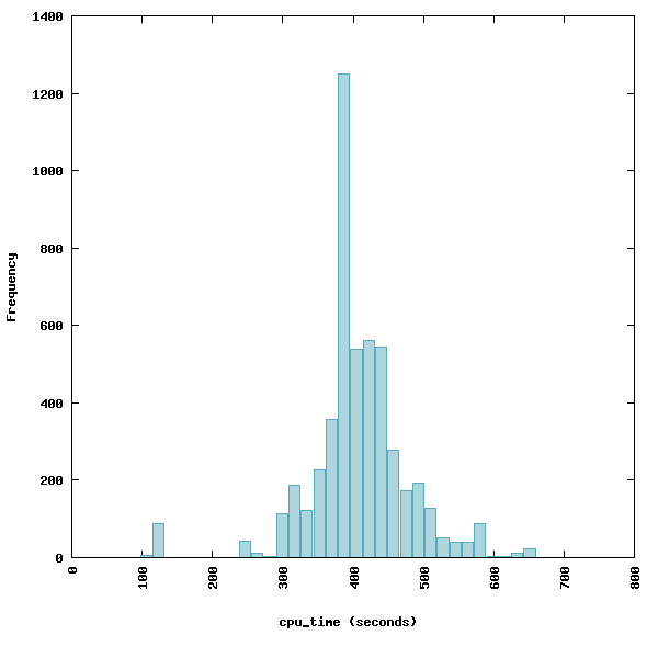The resource_monitor_visualizer creates a series of webpages summarizing the logs produced by the resource_monitor. It generates histograms for each resource and each group. For example, the histogram to the right shows the distribution of cpu usage of a workflow with 5,000 tasks. To use the resource_monitor_visualizer specify the location of the resource logs and the location for the output.